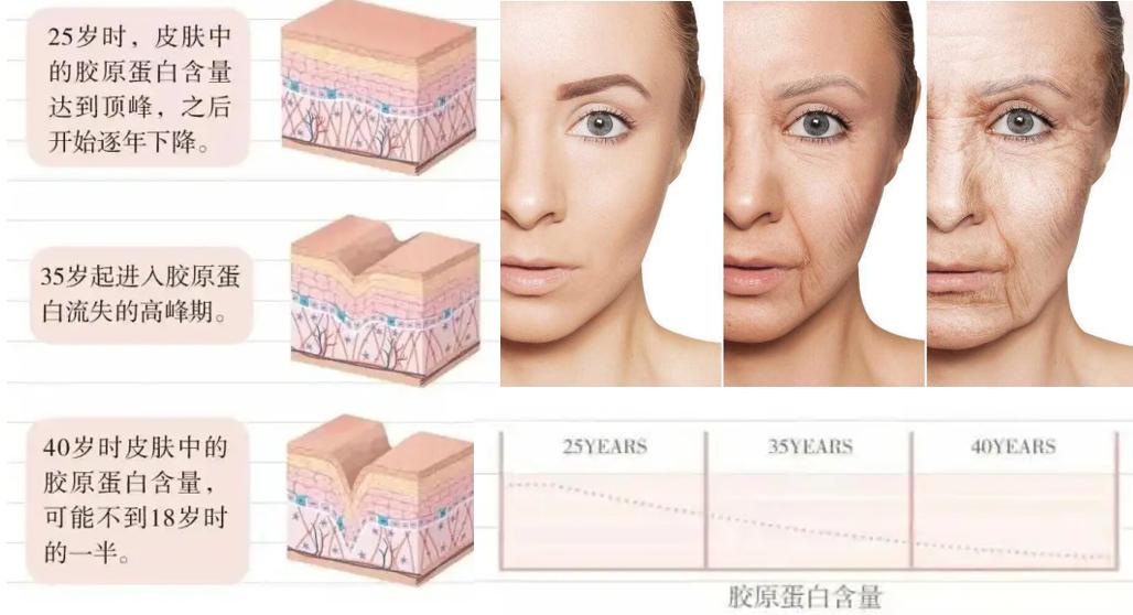 想要针对肌肤老化,松弛状态做逆生长处理就必须了解清楚导致肌肤衰老的真相,就拿最常见的法令纹和眼角纹来说,产生的原因就是胶原蛋白的流失,随着年龄增长,胶原蛋白流失的速度也就越快,皮肤失去弹性纤维导致肌肉松弛老化留下纹路,这属于内在的衰老,而我们上科技就是跟内在衰老进行对抗。